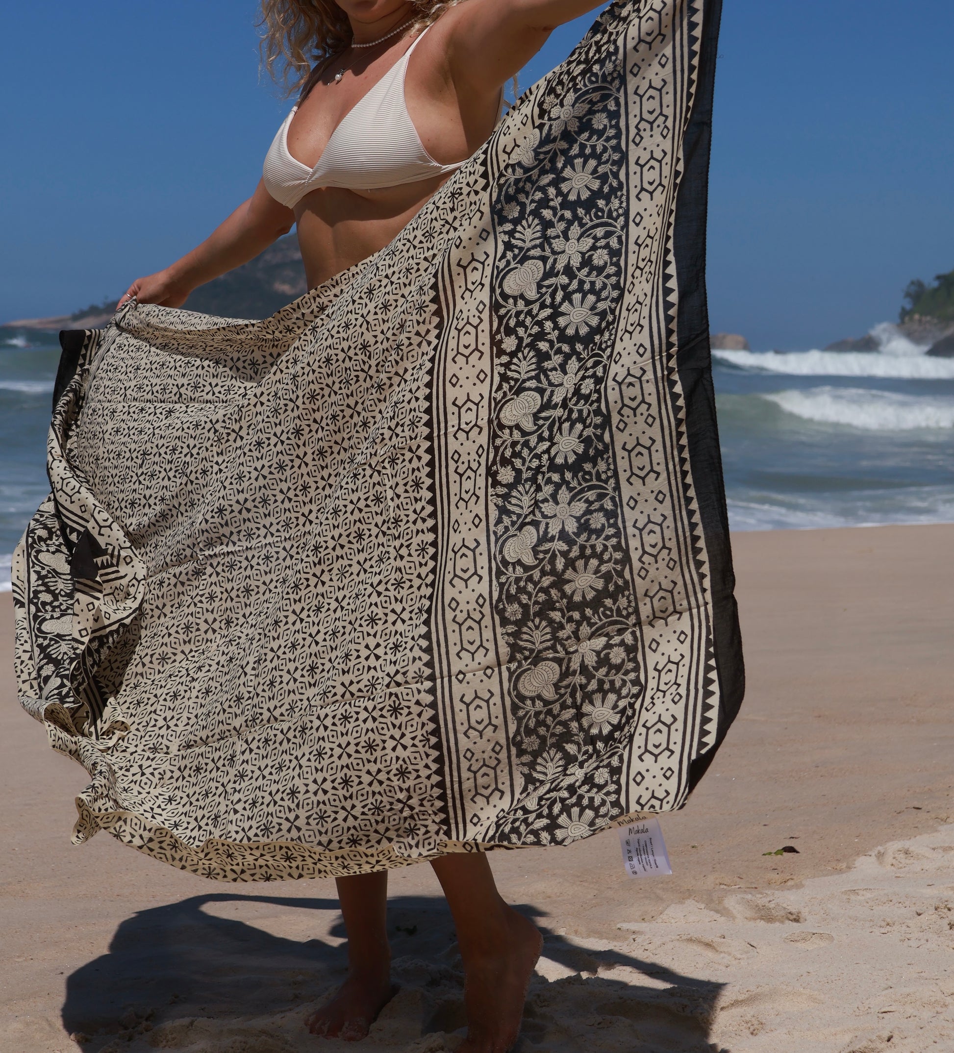Descoperă un accesoriu de plajă atemporal: pareo-ul realizat 100% manual în India, din bumbac organic de cea mai bună calitate.