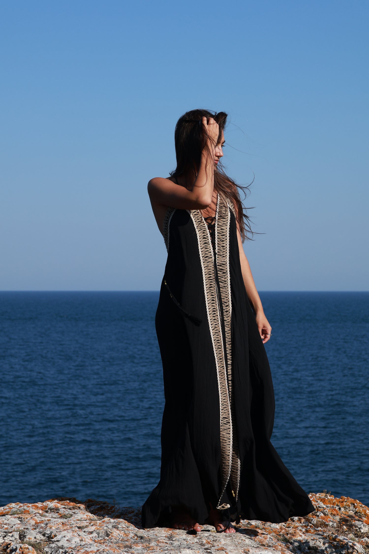 Descoperă rochiile handmade, realizate din 100% vâscoză naturală, cu detalii de iută aplicate manual.