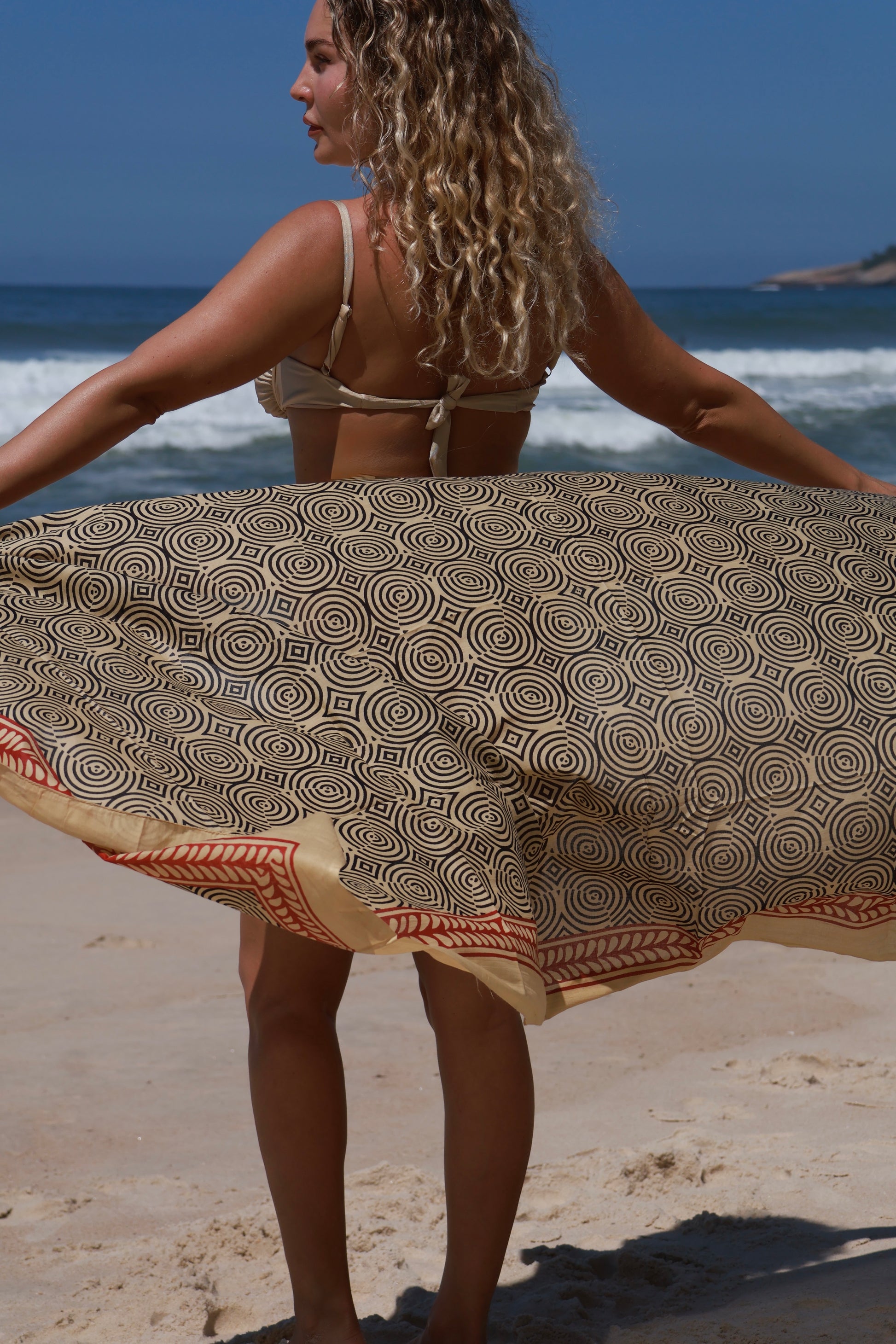 Descoperă un accesoriu de plajă atemporal: pareo-ul realizat 100% manual în India, din bumbac organic de cea mai bună calitate.