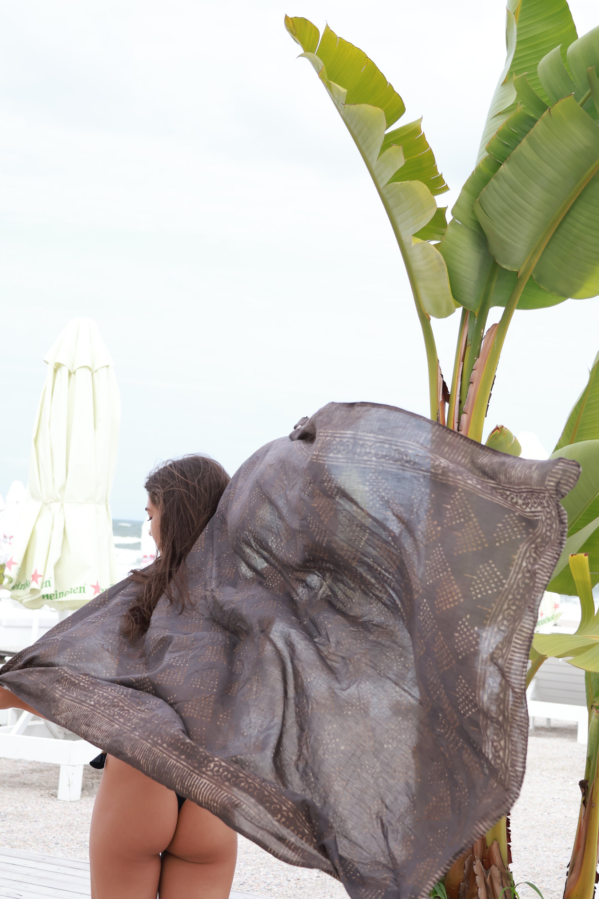 Descoperă un accesoriu de plajă atemporal: pareo-ul realizat 100% manual în India, din bumbac organic de cea mai bună calitate.