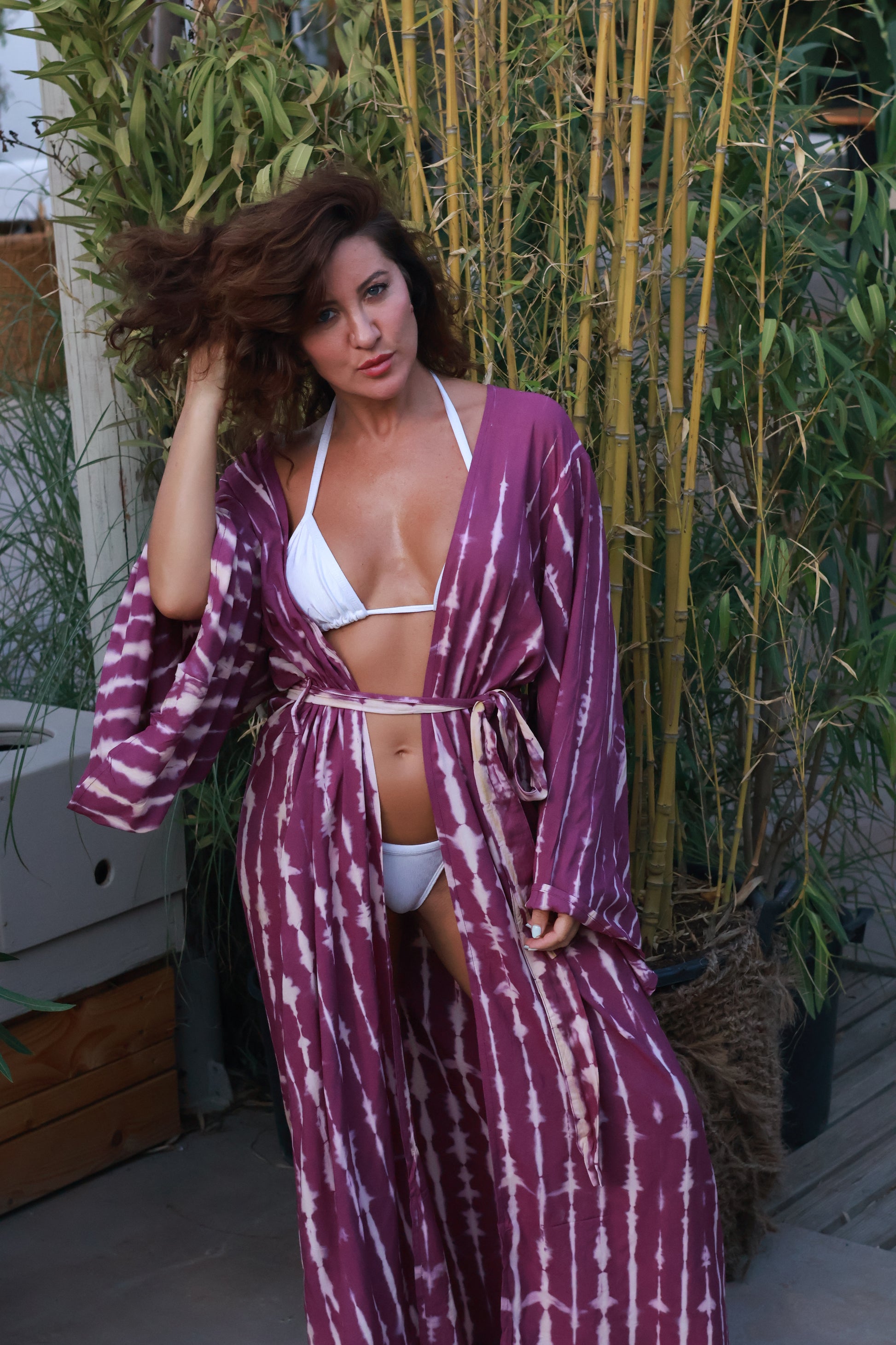 Kimono-ul Kyoto Dyed aduce rafinamentul oriental într-o interpretare contemporană, printr-o țesătură lejeră, fluidă și delicată, perfectă pentru zillele de vară dar și pentru serile răcoroase de vara, primăvară și toamnă.