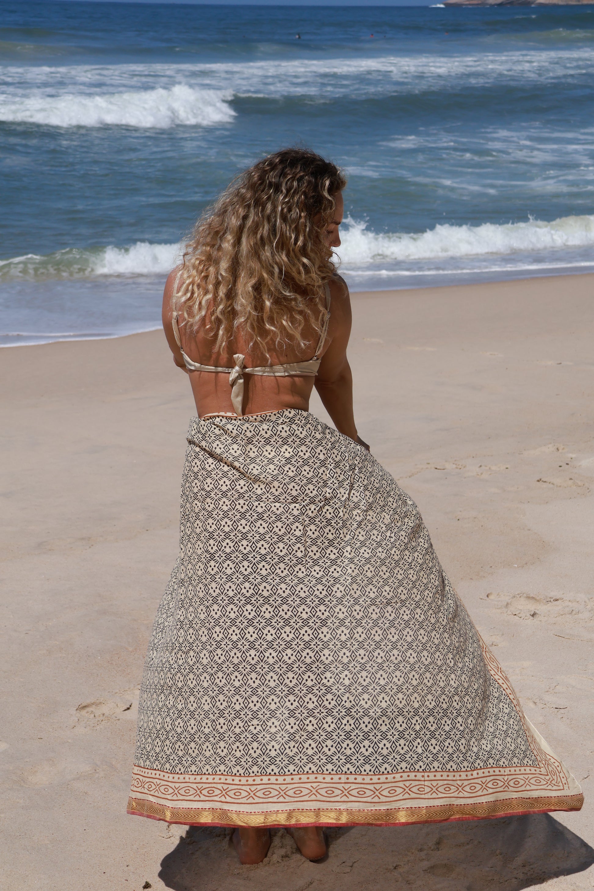 Descoperă un accesoriu de plajă atemporal: pareo-ul realizat 100% manual în India, din bumbac organic de cea mai bună calitate.