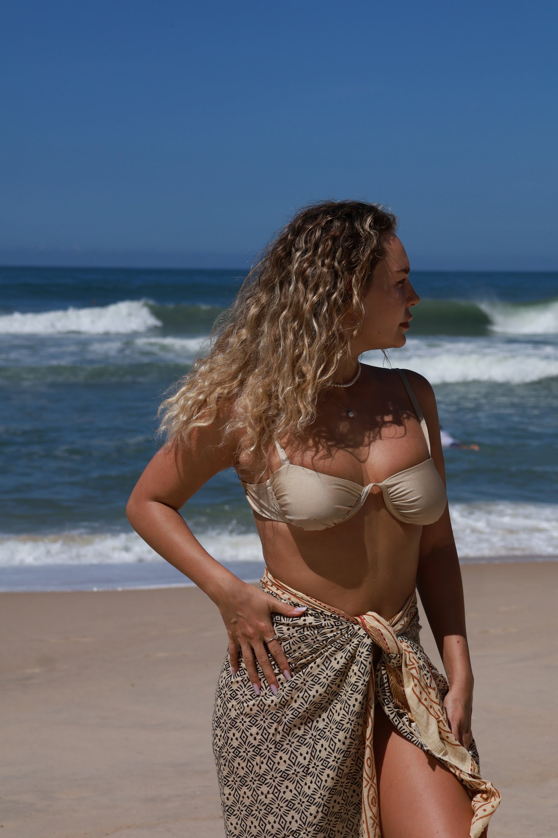 - Pareo-ul poate fi purtat în multiple stiluri: rochie lejeră, fustă înnodată, top sau accesoriu chic de plajă