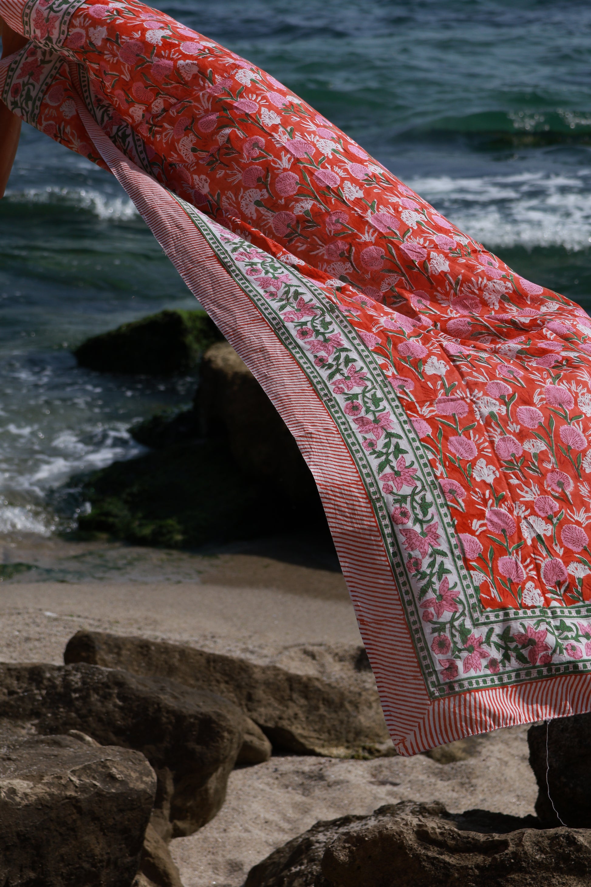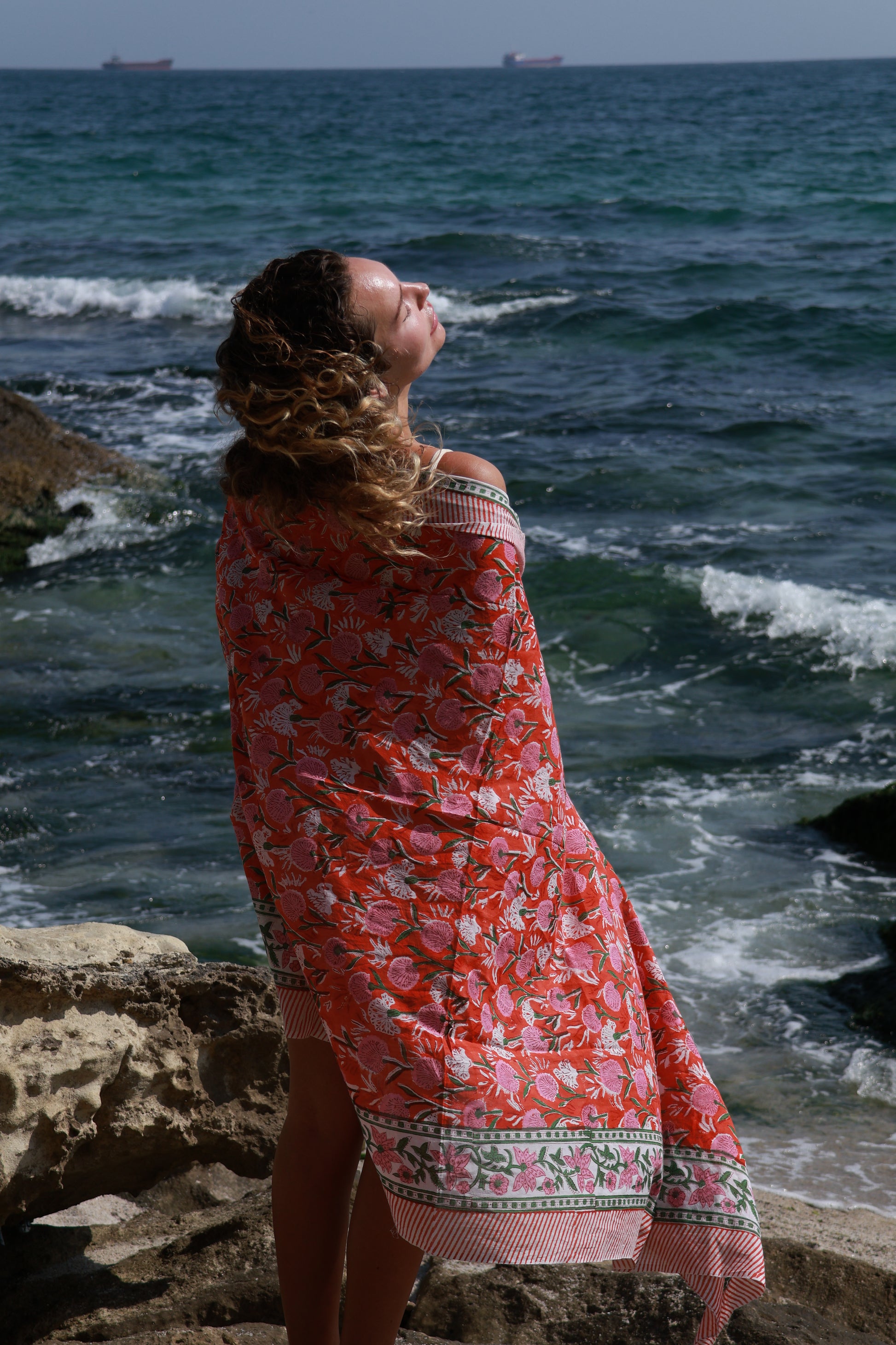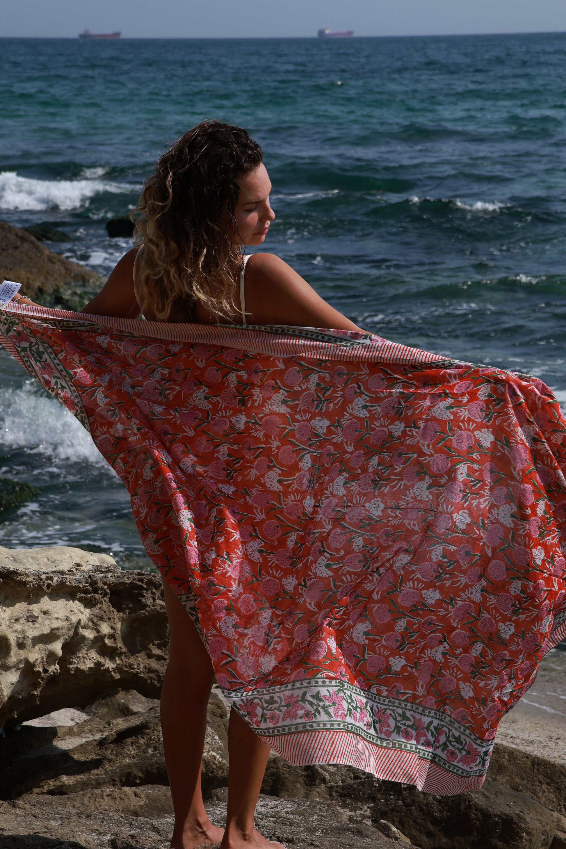 Descoperă un accesoriu de plajă atemporal: pareo-ul realizat 100% manual în India, din bumbac organic de cea mai bună calitate.