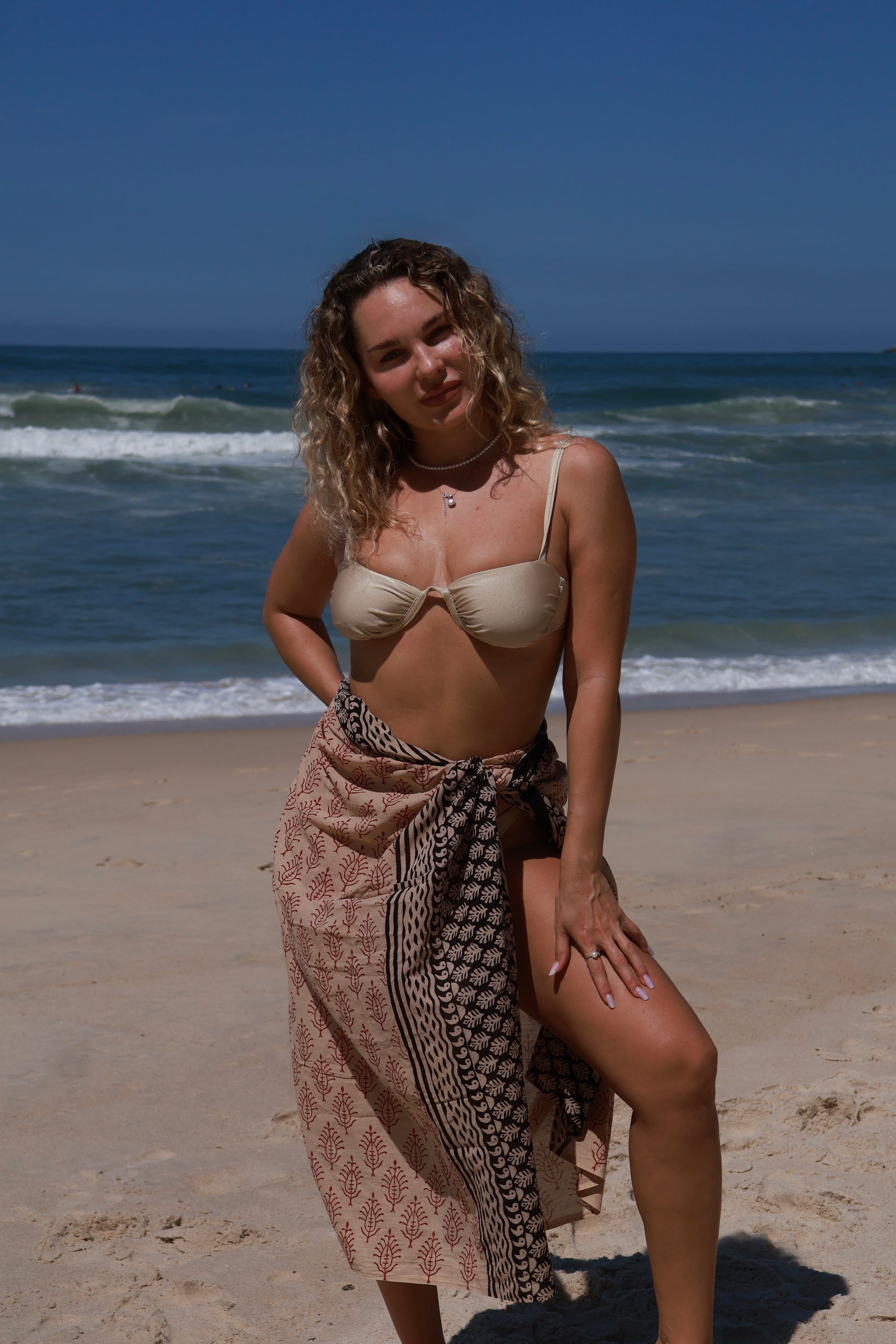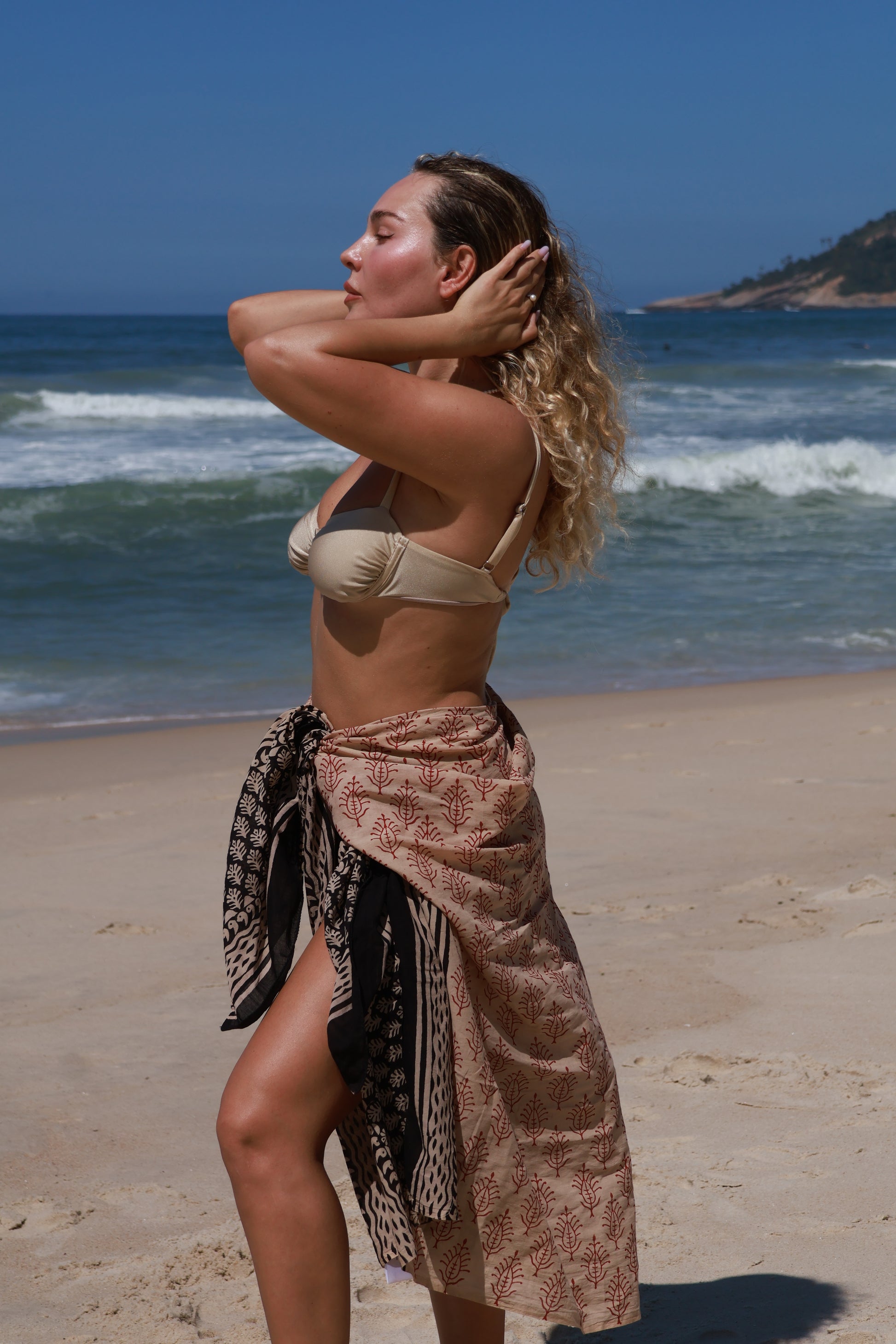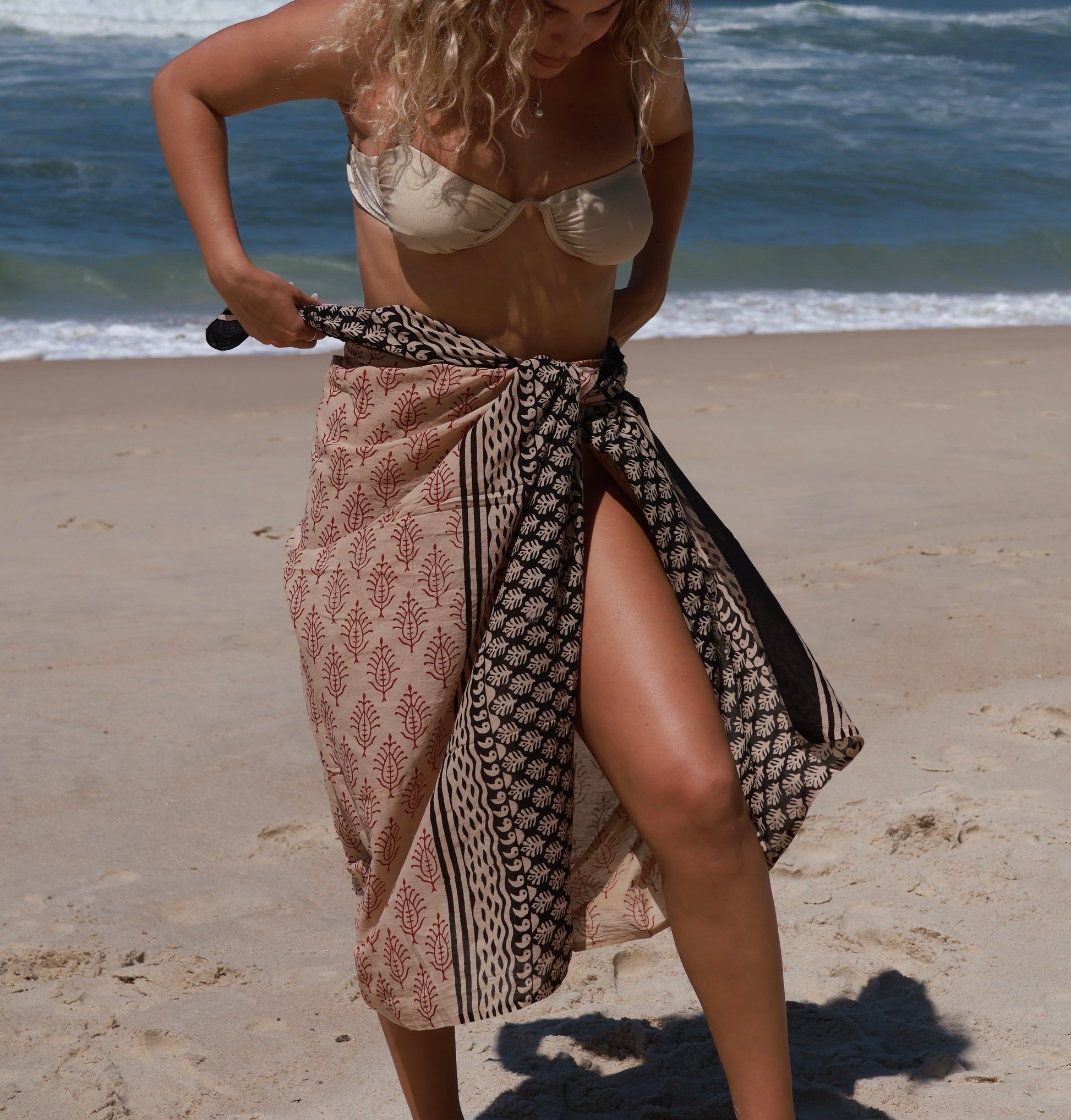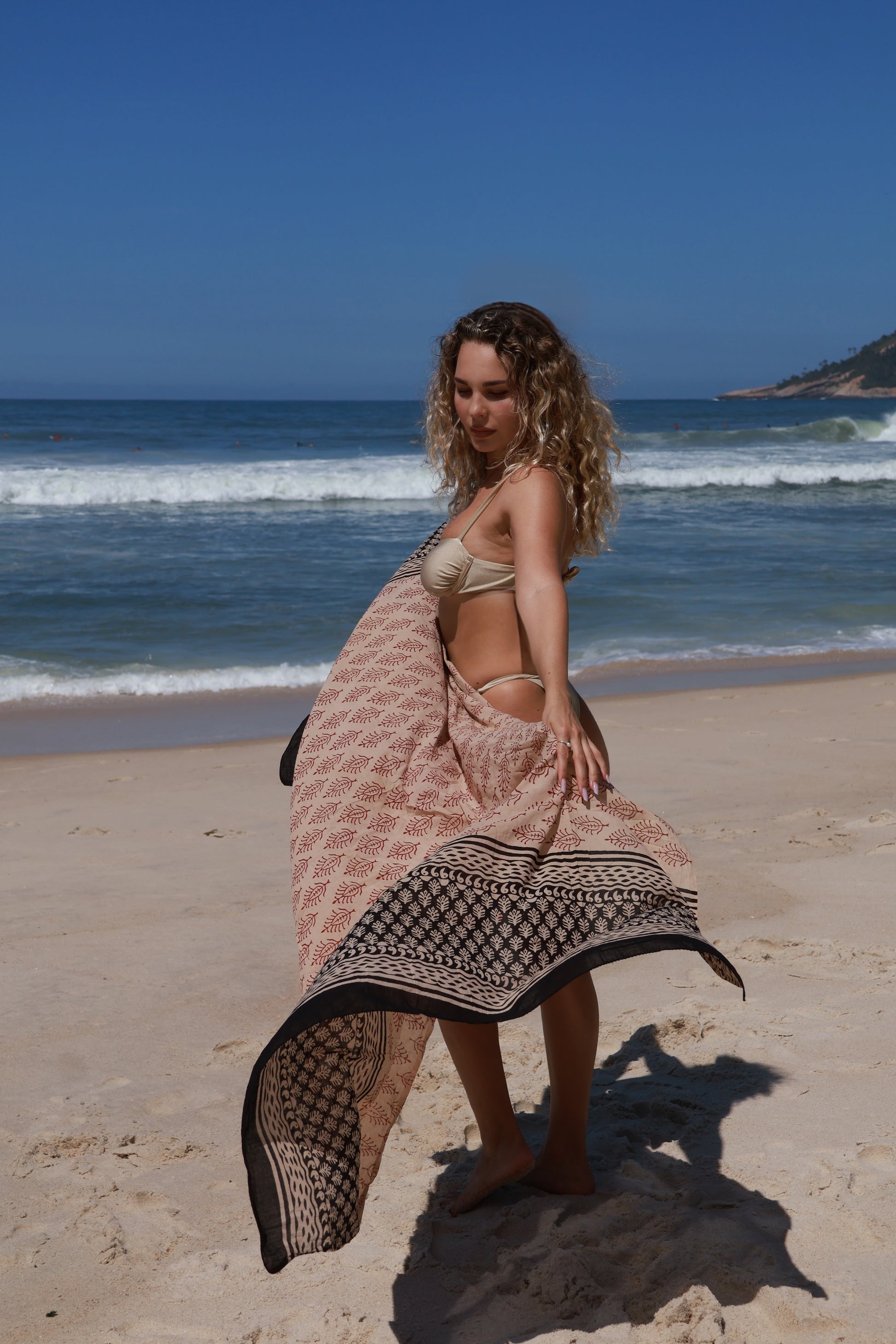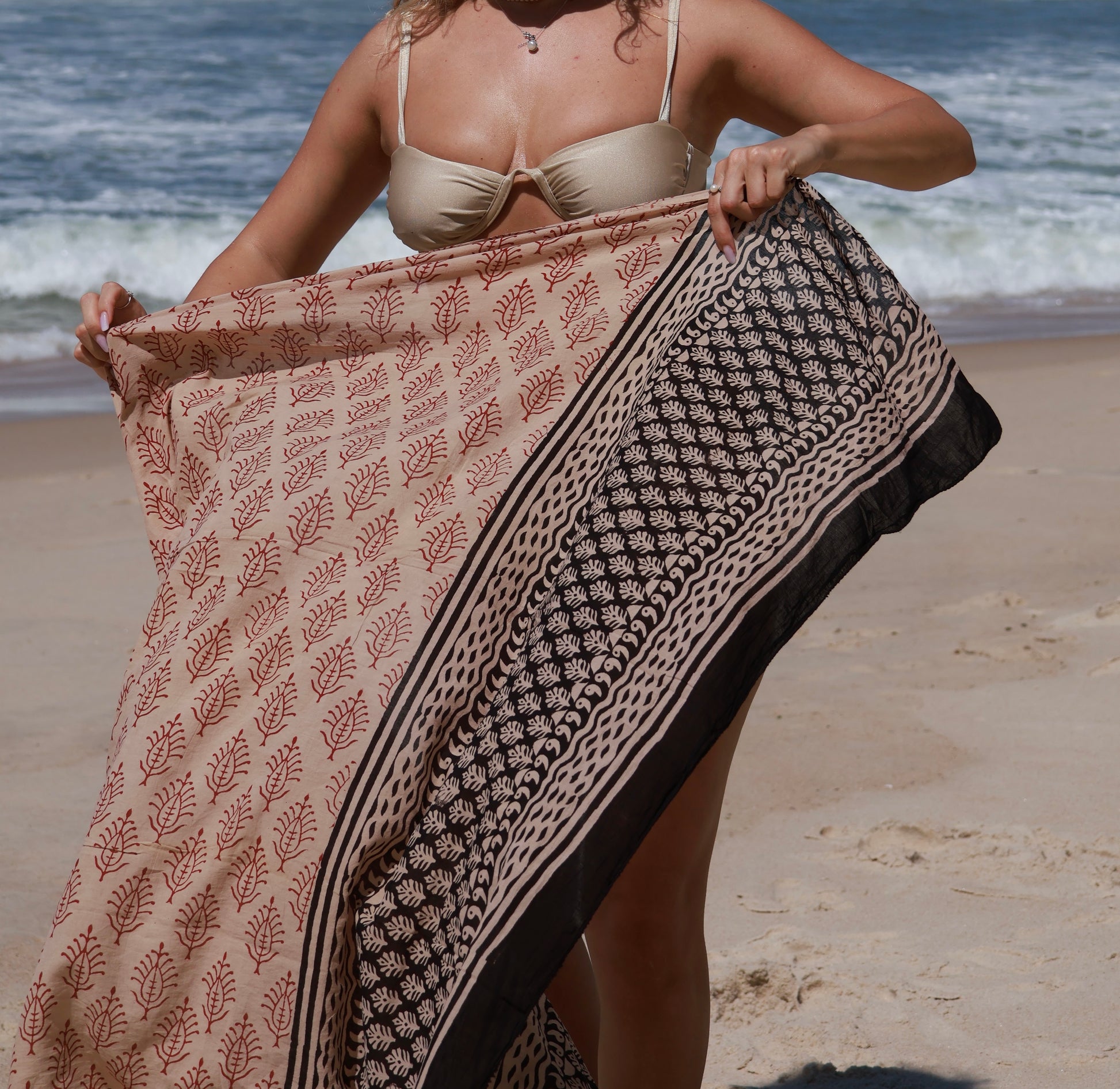 Descoperă un accesoriu de plajă atemporal: pareo-ul realizat 100% manual în India, din bumbac organic de cea mai bună calitate.