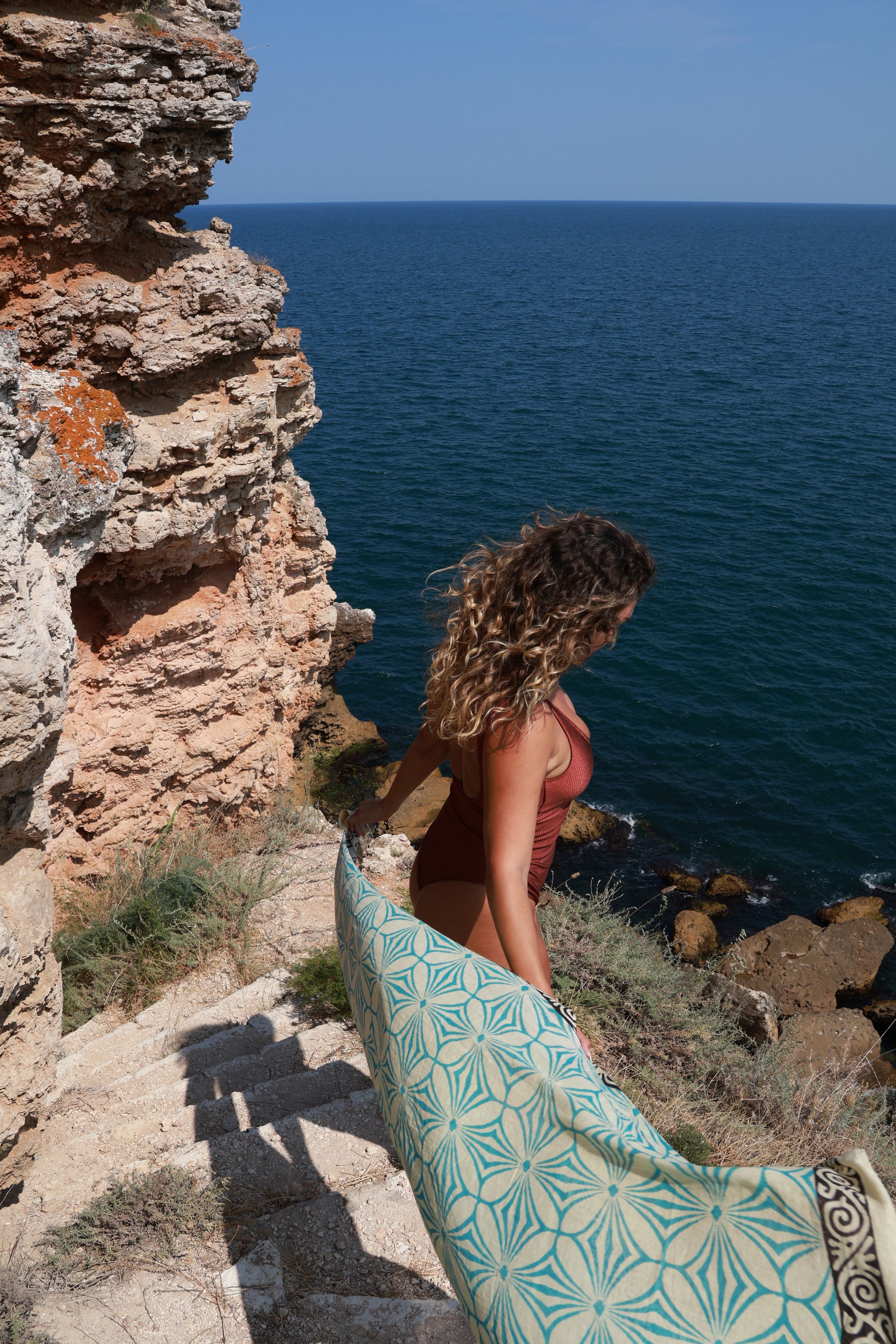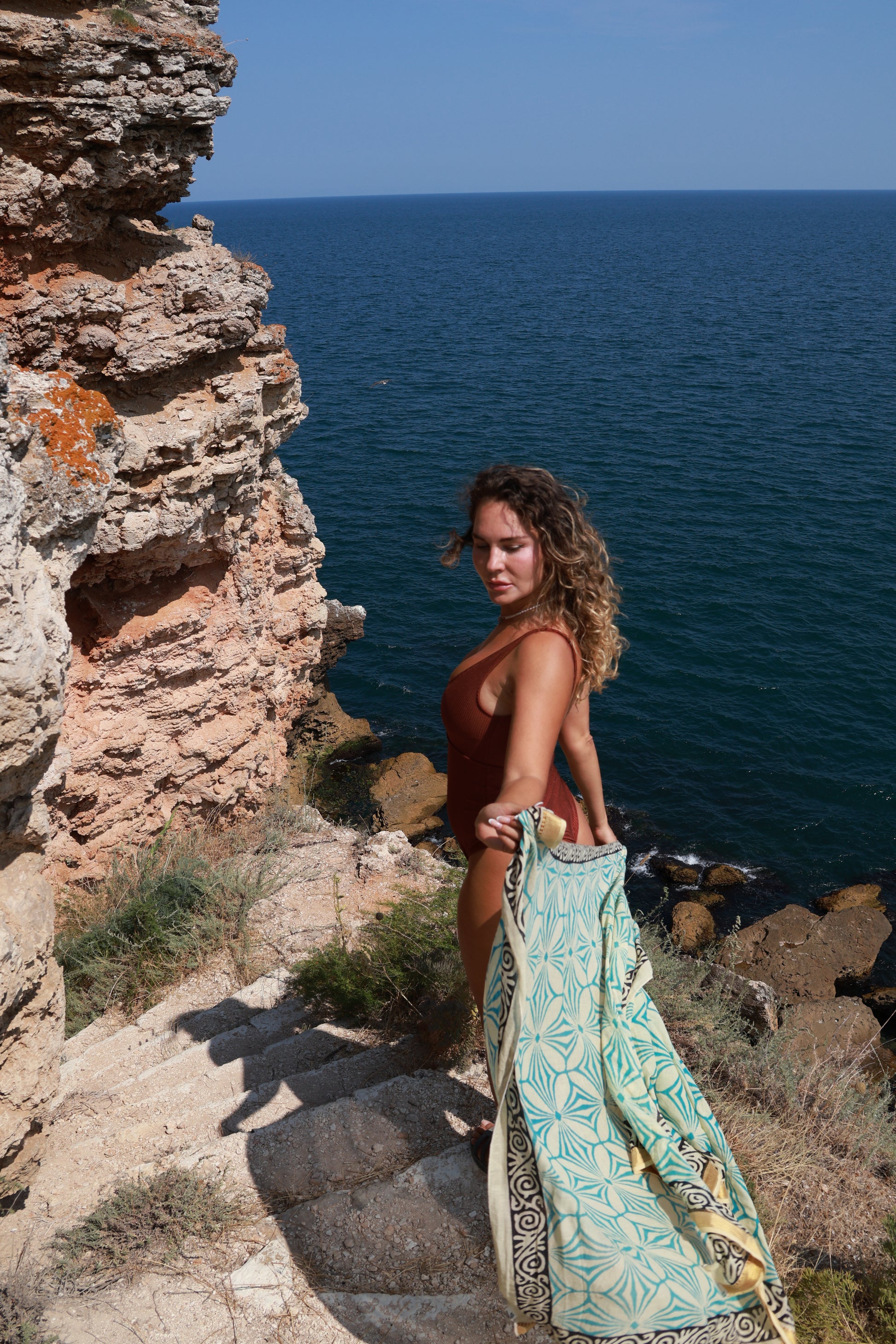 Descoperă un accesoriu de plajă atemporal: pareo-ul realizat 100% manual în India, din bumbac organic de cea mai bună calitate.