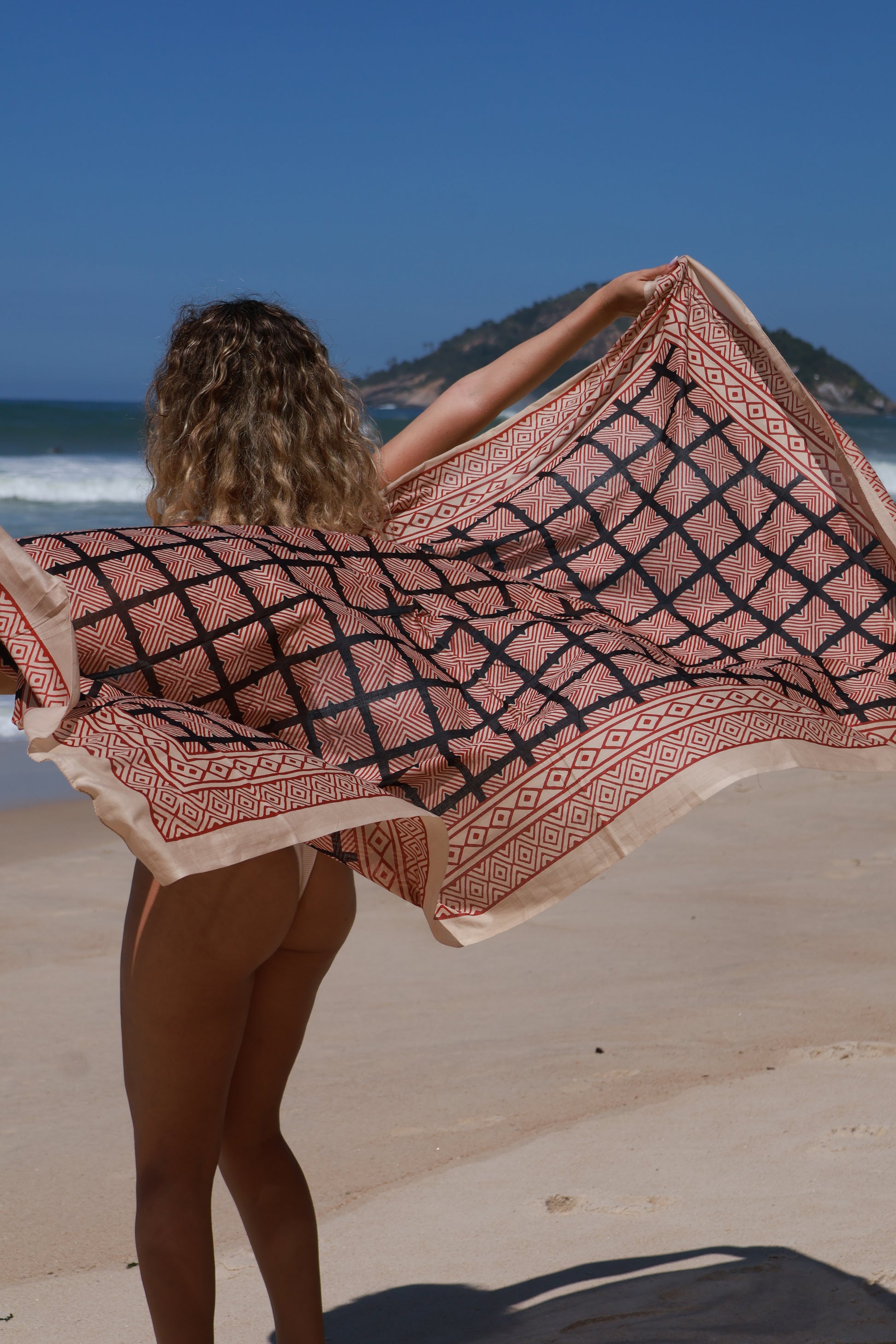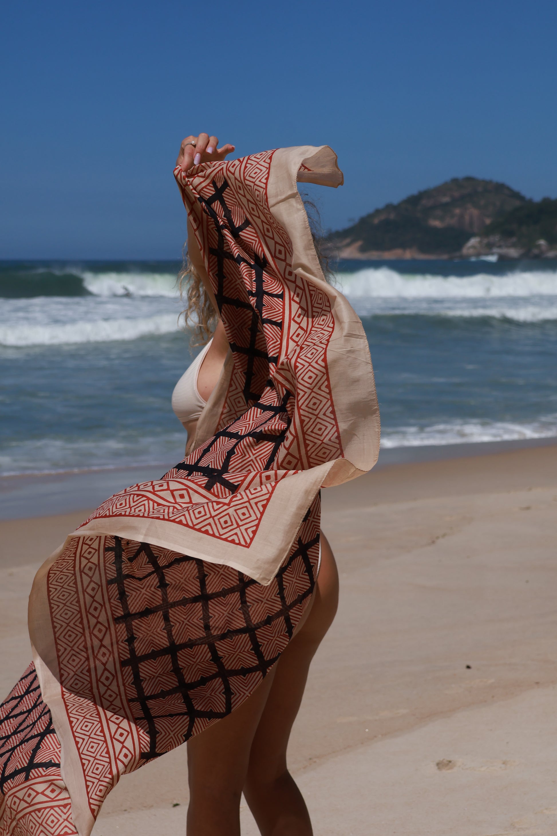 Descoperă un accesoriu de plajă atemporal: pareo-ul realizat 100% manual în India, din bumbac organic de cea mai bună calitate.