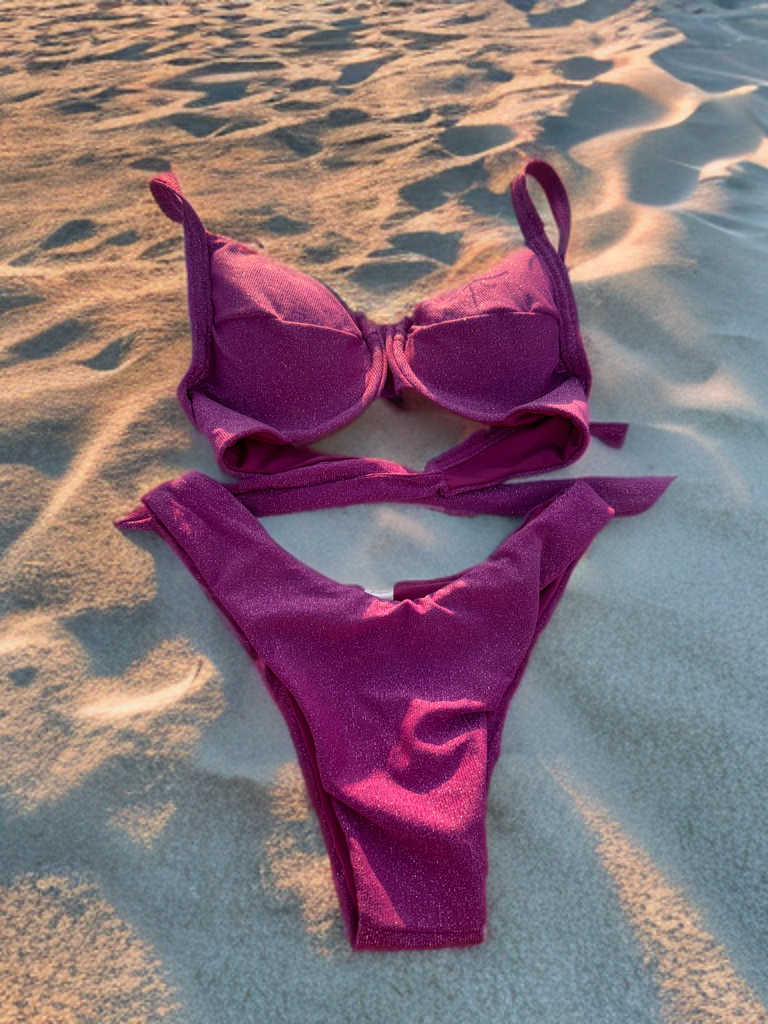Stardust este un costum de baie balconette realizat din material brazilian de calitate superioară, cu sclipici fin pentru o strălucire discretă. Topul cu arc interior oferă susținere și confort, iar bretelele reglabile asigură potrivirea perfectă.
