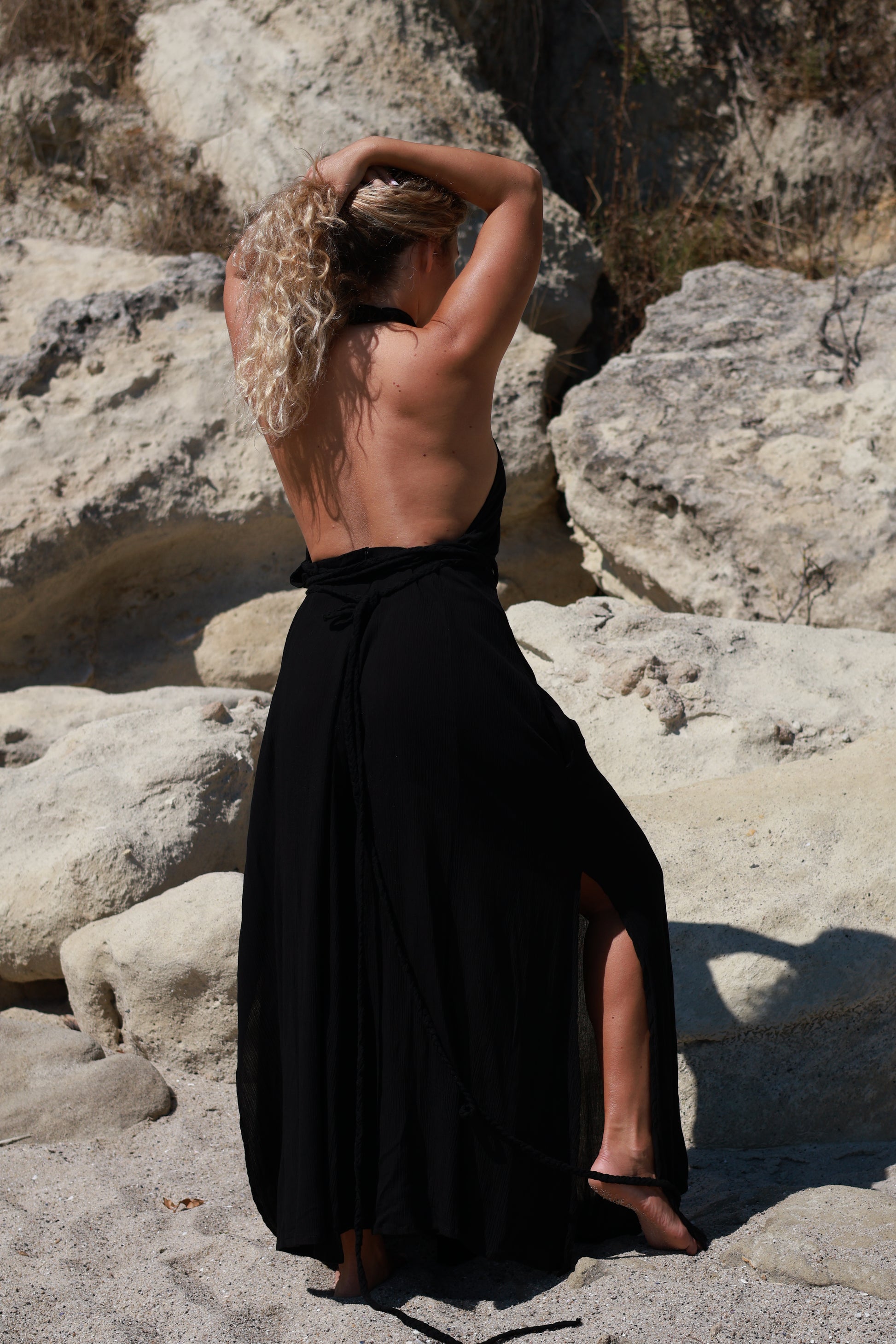 Rochia handmade Zephyra reinterpretează feminitatea printr-o estetică atemporală, inspirată de grația zeițelor grecești. Cordonul împletit manual, ajustabil, încadrează talia și oferă libertatea de a fi stilizat în mai multe feluri – fie ca accent sculptural al bustului, fie ca detaliu fluid care completează liniile rochiei.